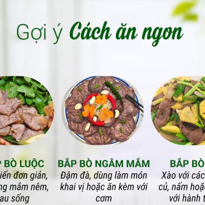 Đặc điểm nổi bật: Bắp bò nổi tiếng với độ dai giòn tự nhiên và hương vị thịt bò đậm đà, thơm ngon. Khi hầm hoặc luộc, các gân mềm ra, mang lại cảm giác sần sật hấp dẫn.